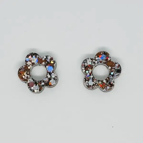 Fait main : Boucles d'oreilles en forme de fleur avec paillettes brunes incrustées !