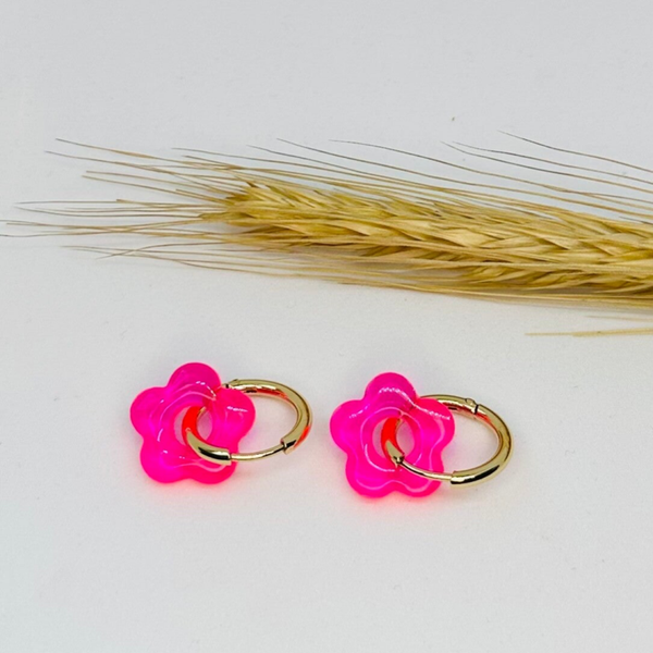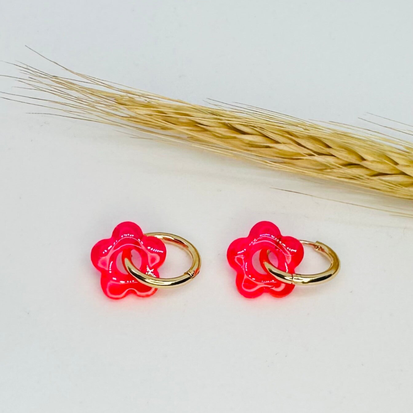 Fait main : Boucles d'oreilles en forme de fleur rose translucide !