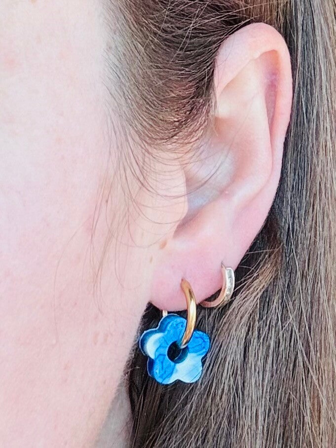 Fait main : Boucles d'oreilles en forme de fleur bleue marbrée !