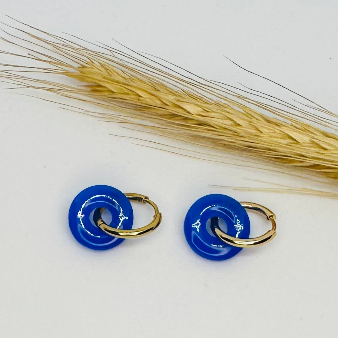 Fait main : Boucles d'oreilles en forme de cercle bleu marbré foncé !