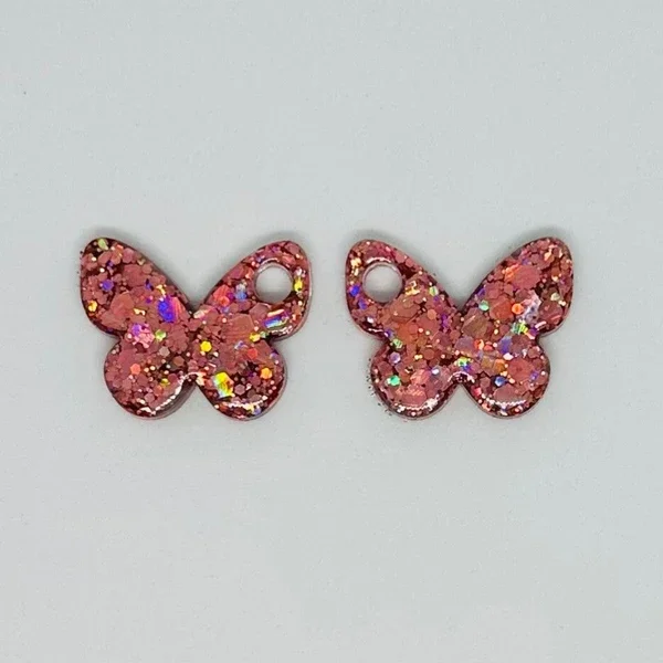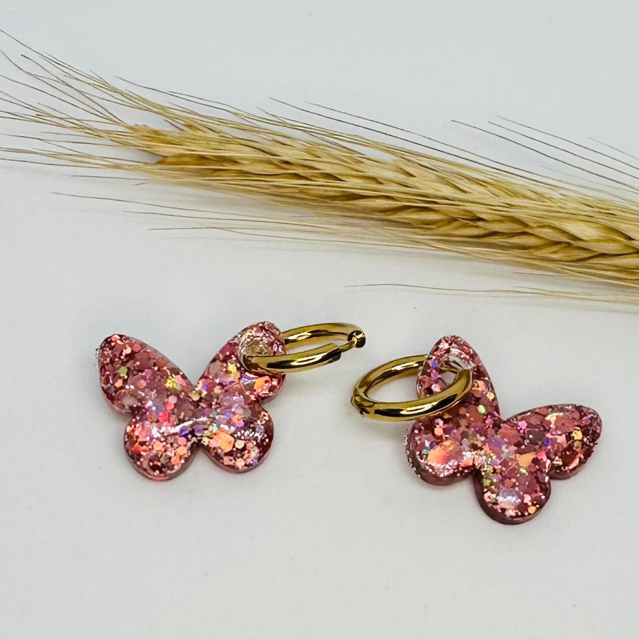 Fait main : Boucles d'oreilles en forme de papillon couleur rose pailletée !