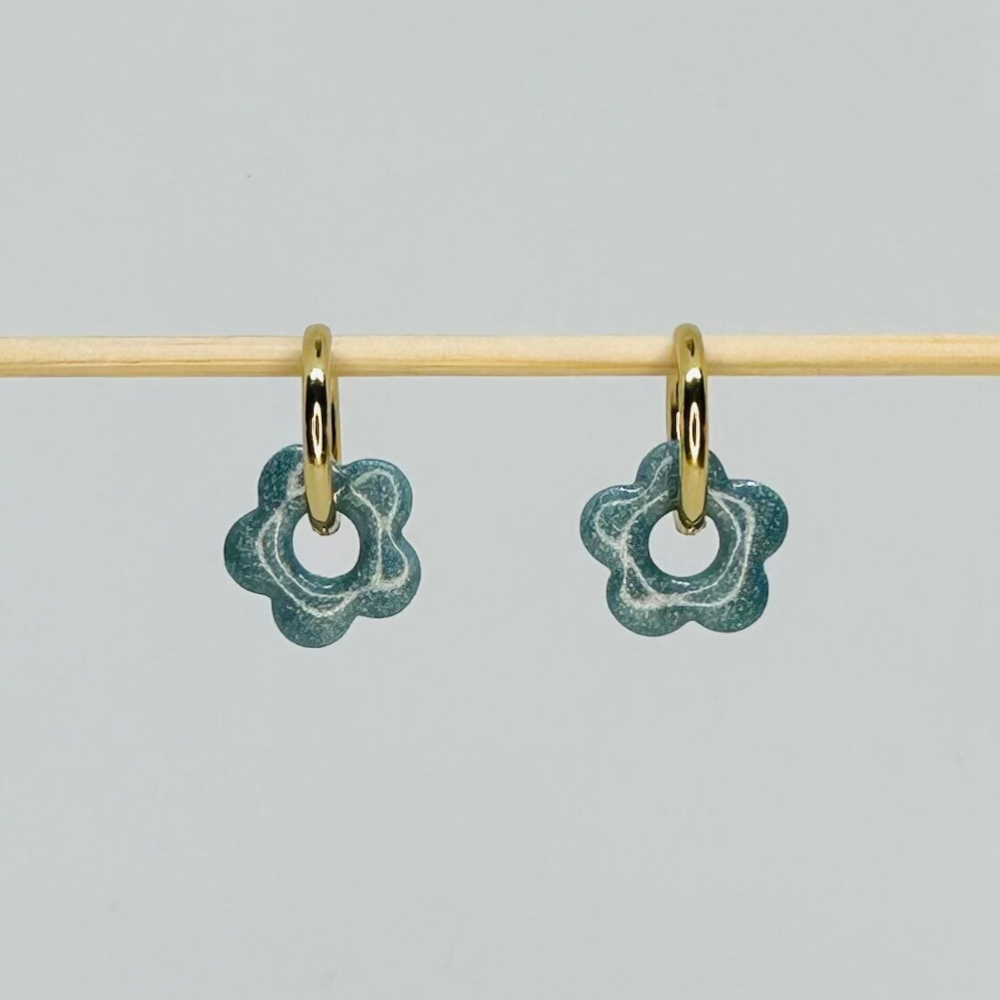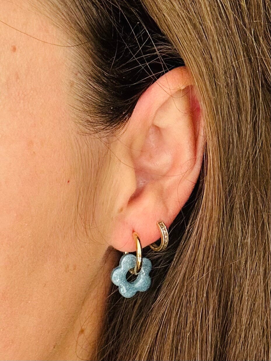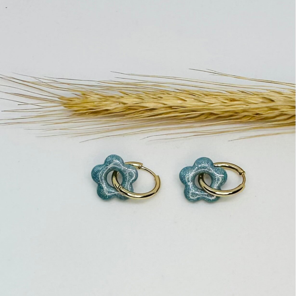 Fait main : Boucles d'oreilles en forme de fleur bleue nacrée !