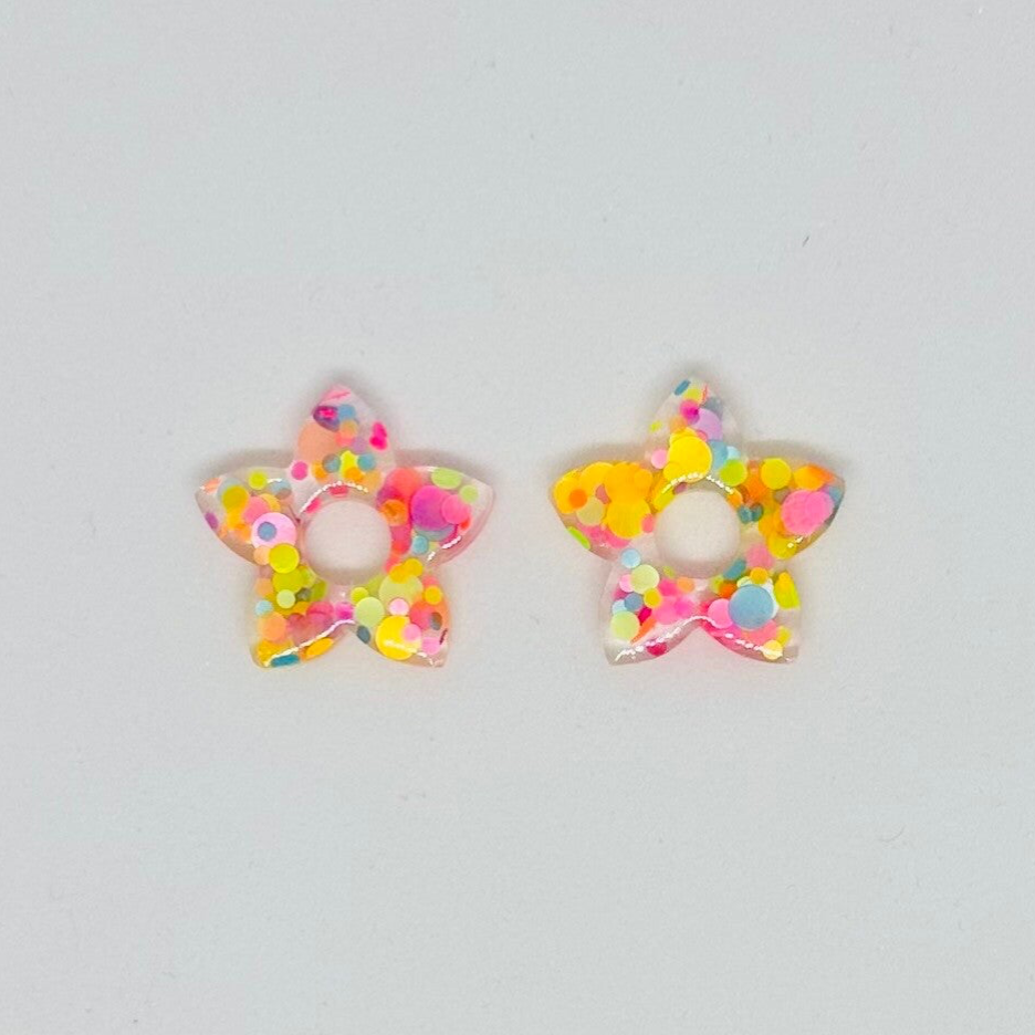 Fait main : Boucles d'oreilles en forme d'étoile avec des confettis multicolores !