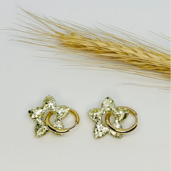 Fait main : Boucles d'oreilles en forme d'étoile couleur champagne pailletée !
