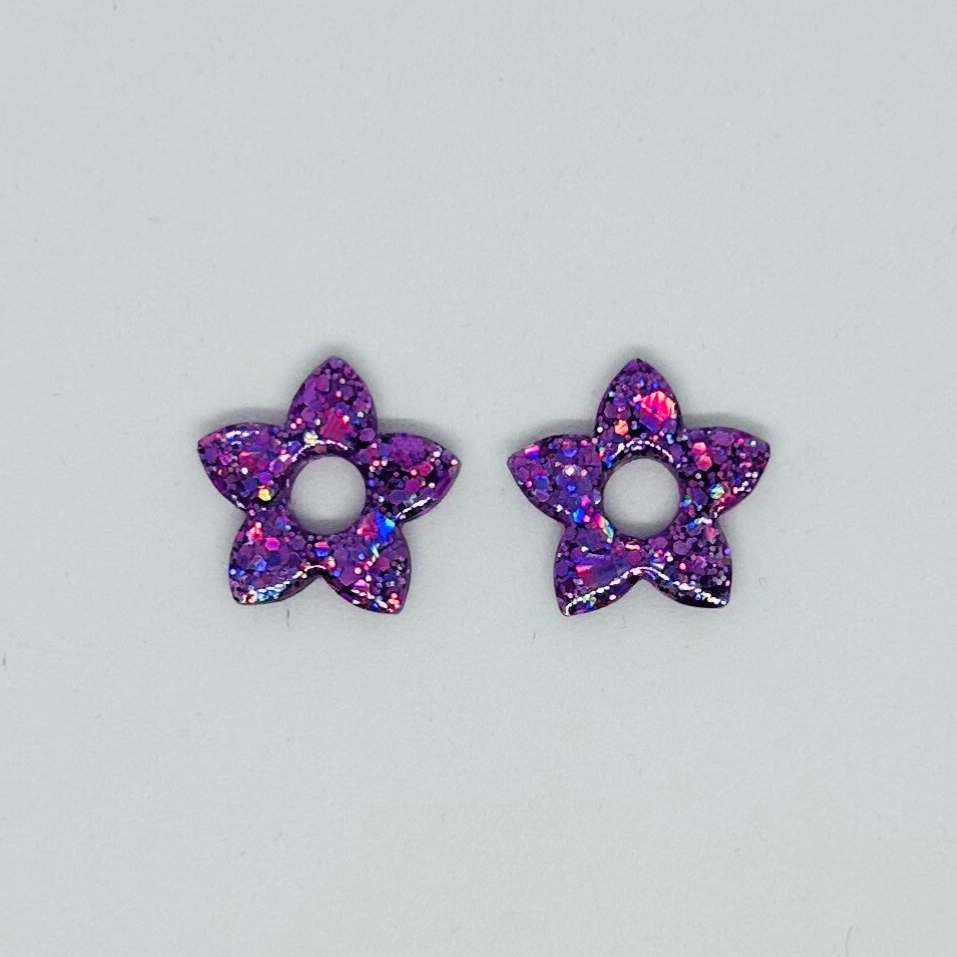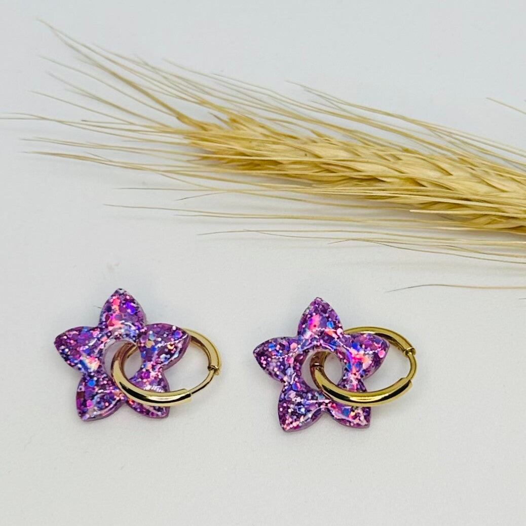 Fait main : Boucles d'oreilles en forme d'étoile couleur violette pailletée !