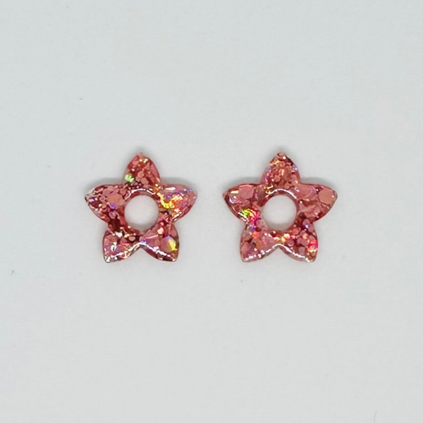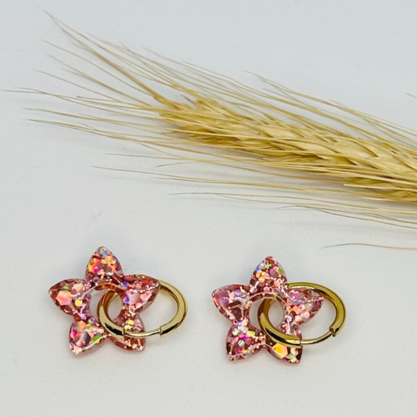 Fait main : Boucles d'oreilles en forme d'étoile couleur rose pailletée !