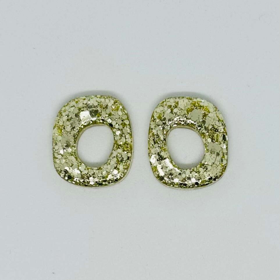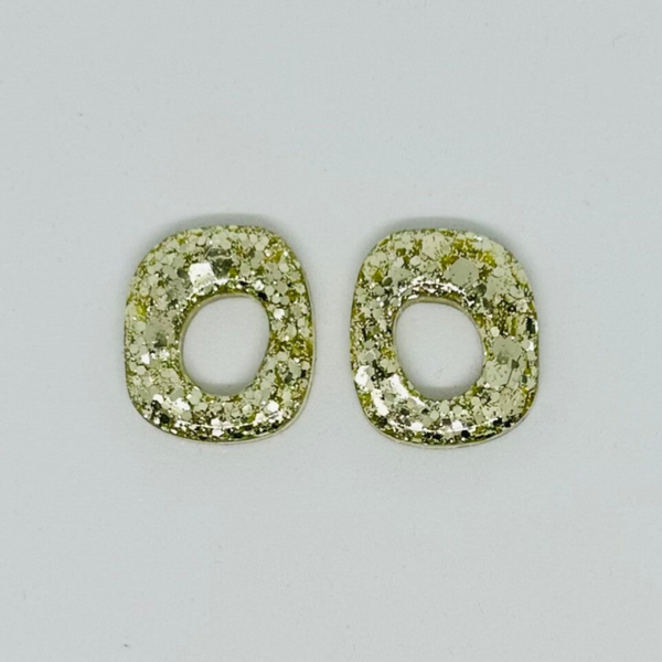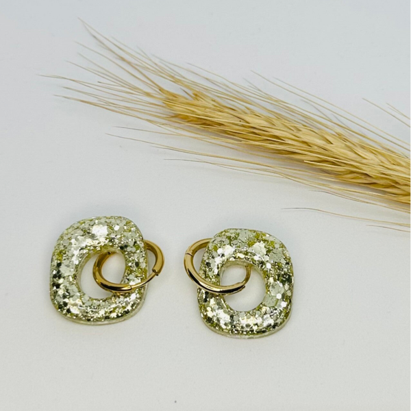 Fait main : Boucles d'oreilles en forme de carré déstructuré couleur champagne pailletée !