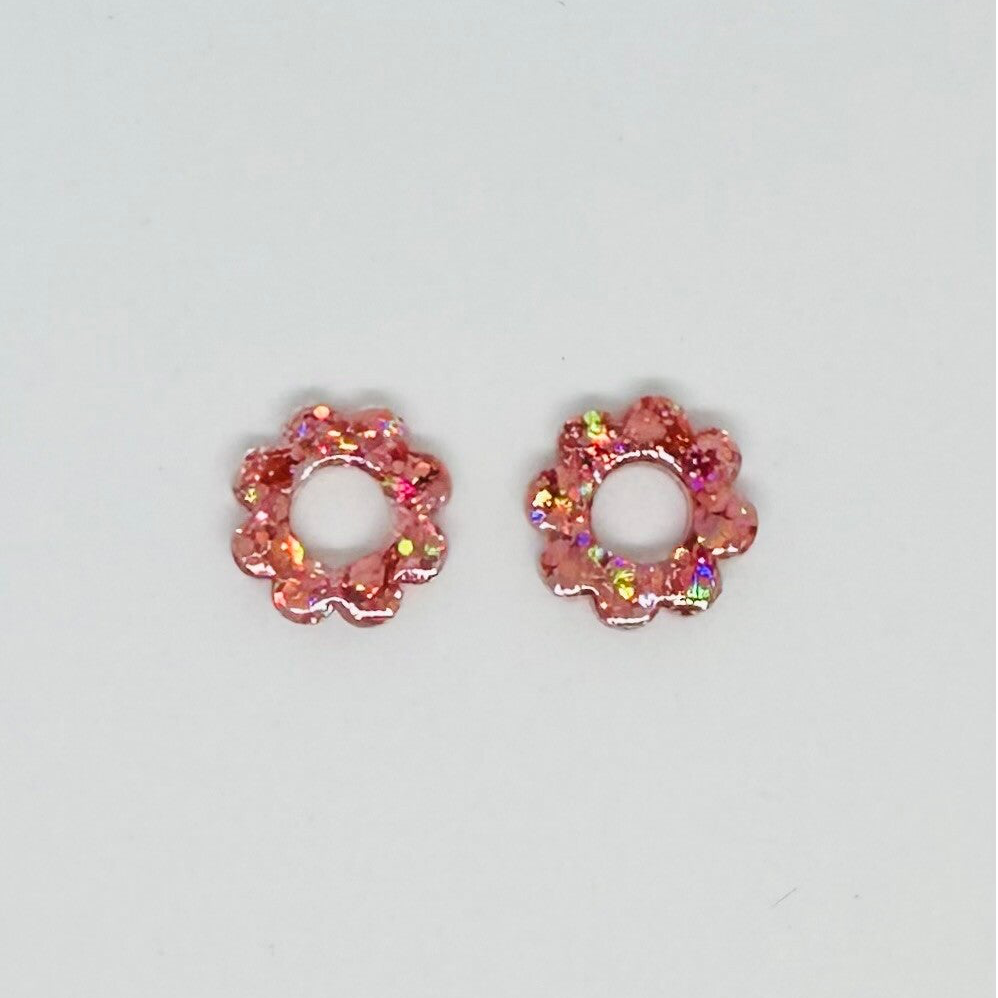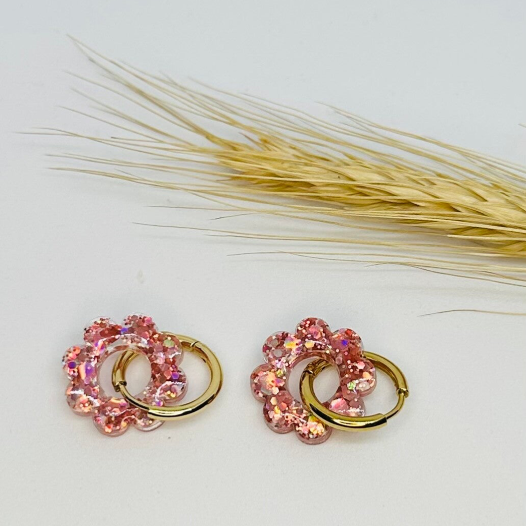 Fait main : Boucles d'oreilles en forme de marguerite couleur rose pailletée !