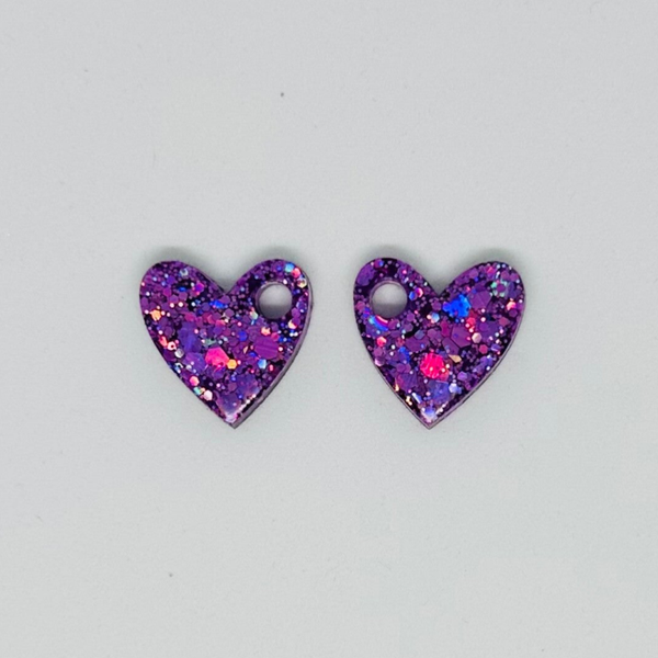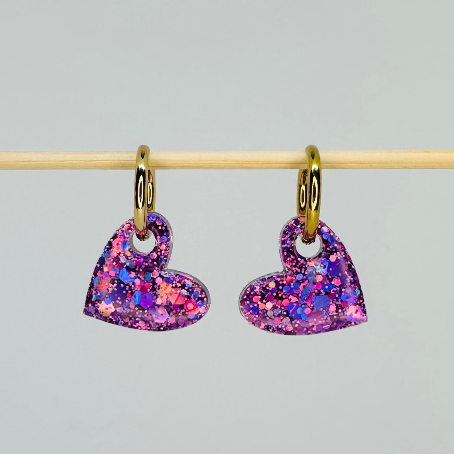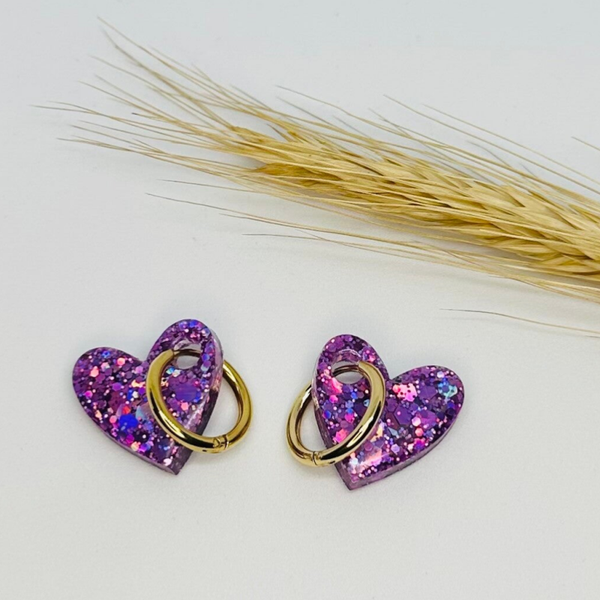 Fait main : Boucles d'oreilles en forme de coeur couleur violette pailletée !