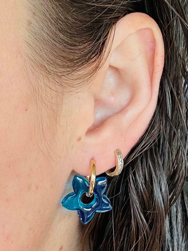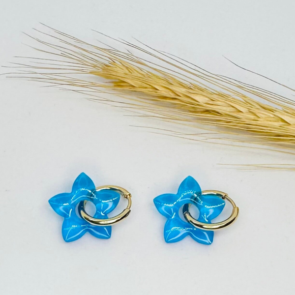 Fait main : Boucles d'oreilles en forme d'étoile couleur bleue translucide !