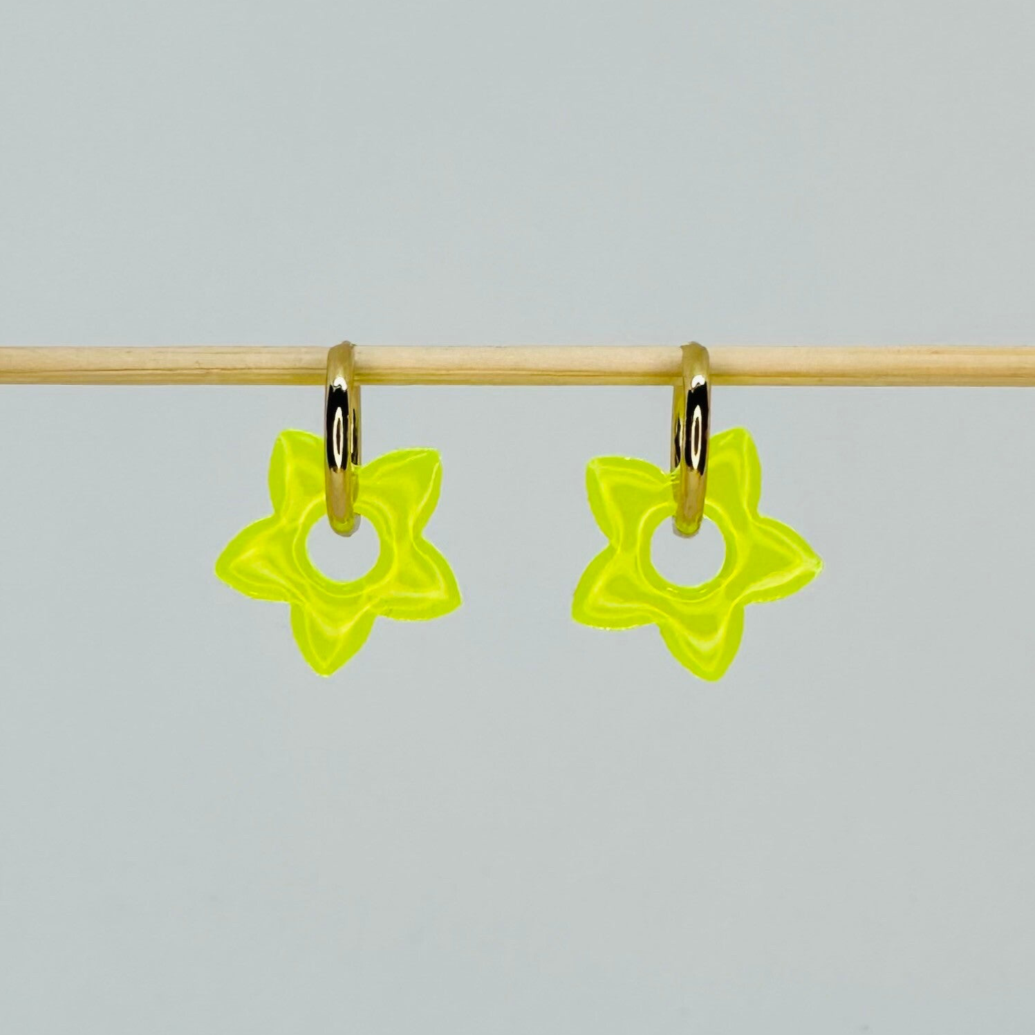 Fait main : Boucles d'oreilles en forme d'étoile couleur jaune translucide !