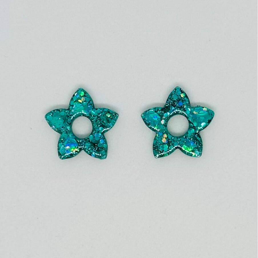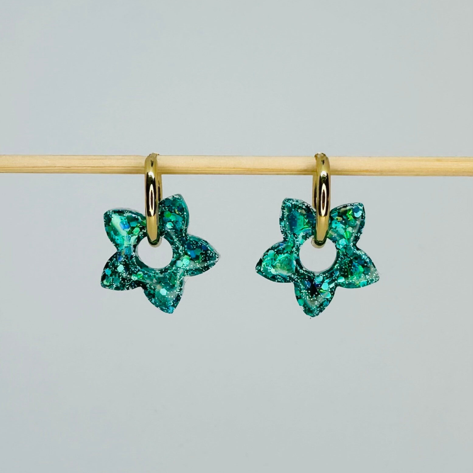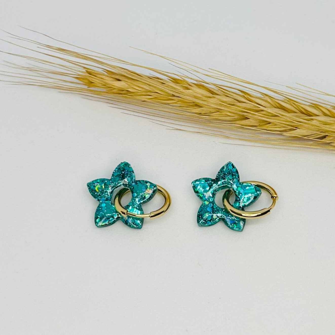 Fait main : Boucles d'oreilles en forme d'étoile couleur verte pailletée !