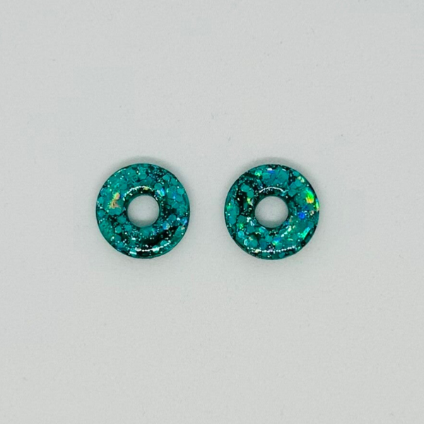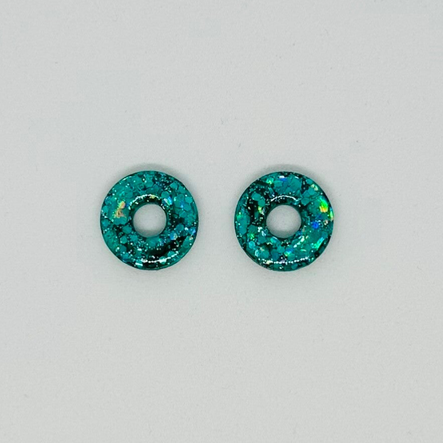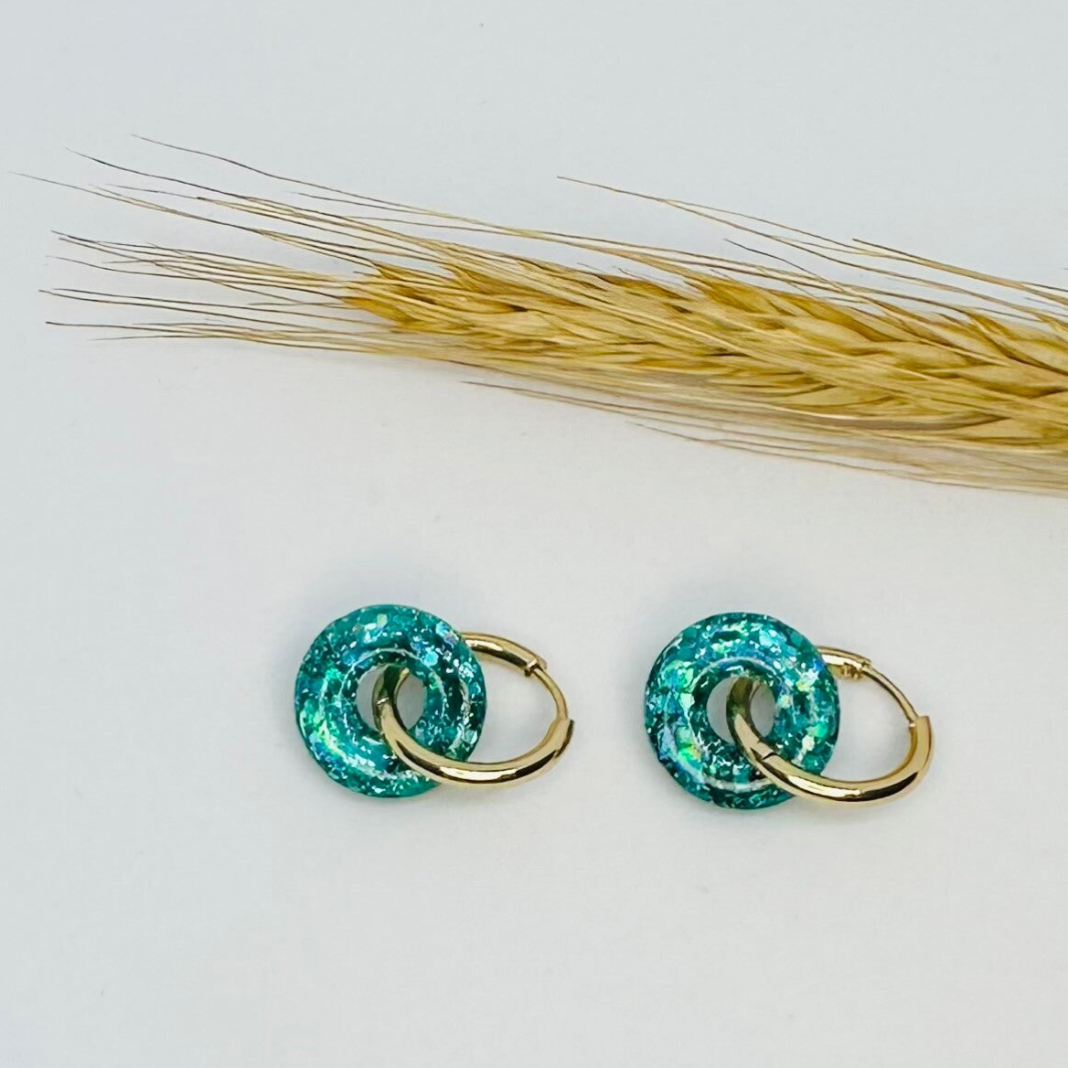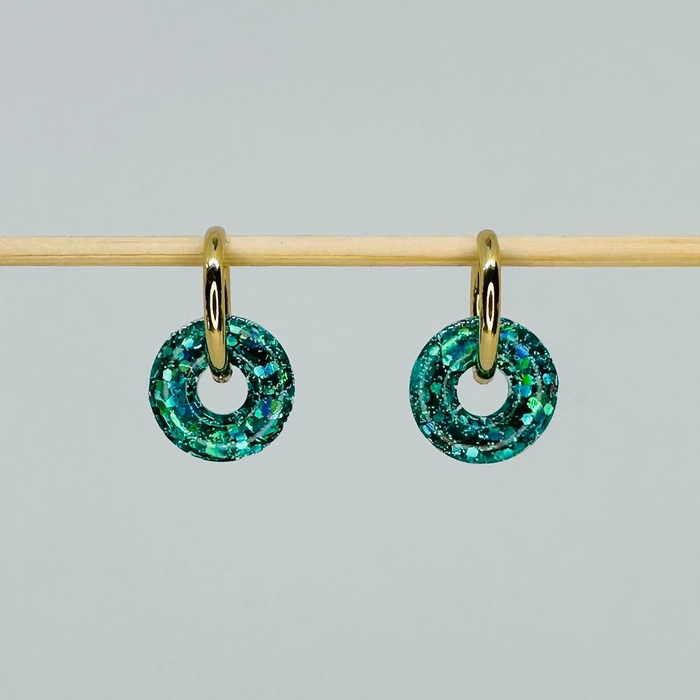 Fait main : Boucles d'oreilles en forme de cercle vert clair pailleté !