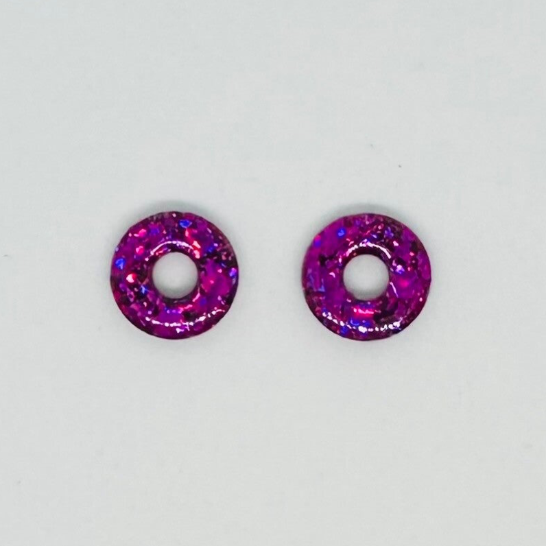 Fait main : Boucles d'oreilles en forme de cercle violet foncé pailleté !