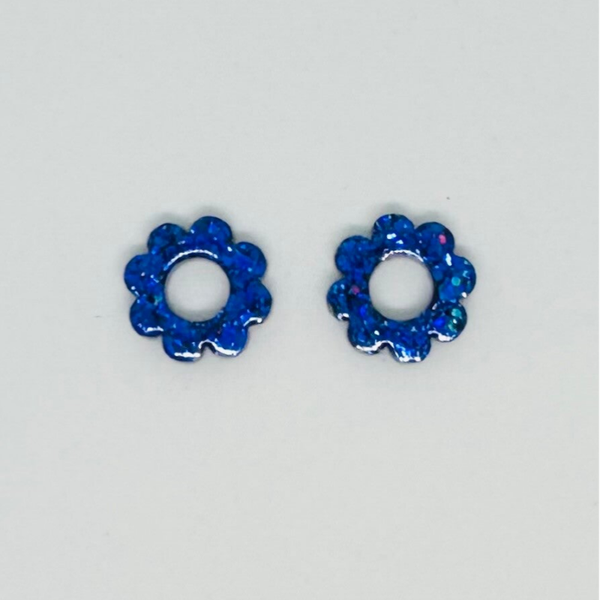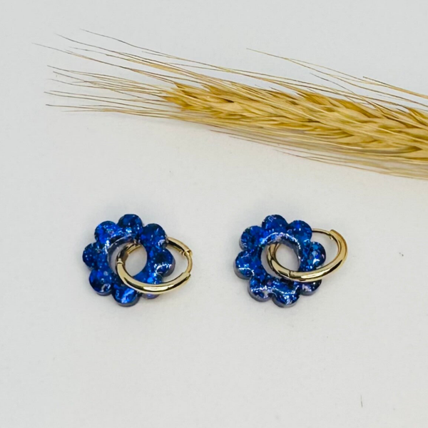 Fait main : Boucles d'oreilles en forme de marguerite couleur bleue pailletée !