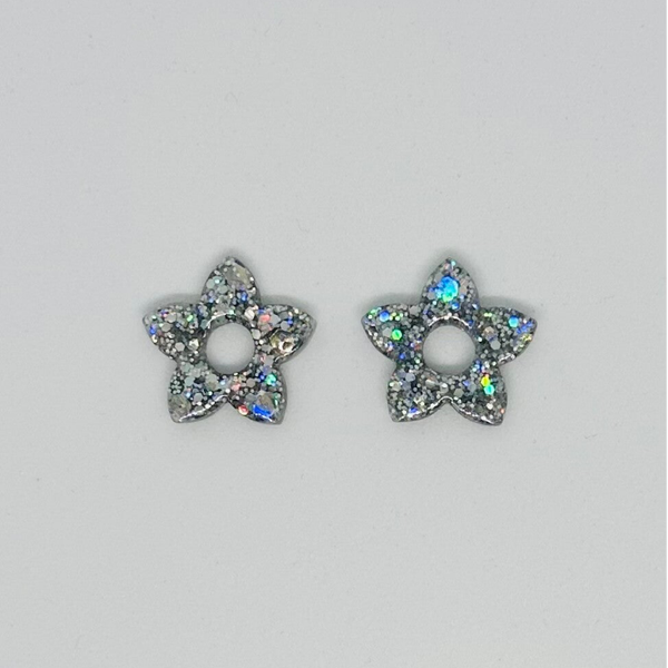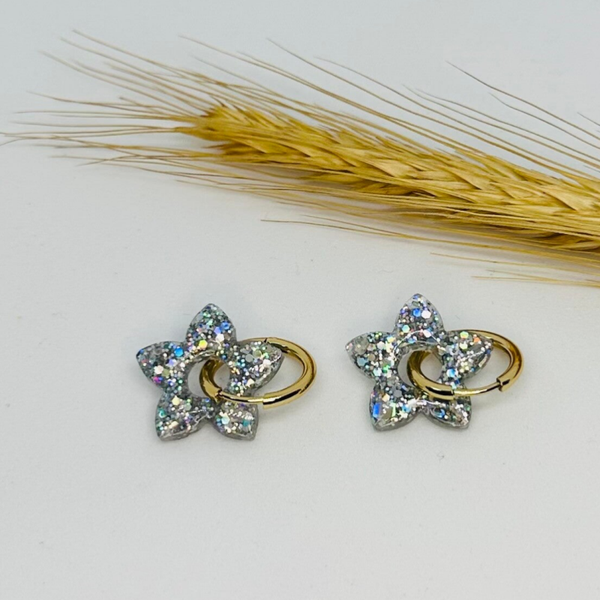 Fait main : Boucles d'oreilles en forme d'étoile couleur argent pailletée !