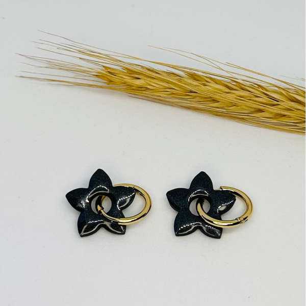 Fait main : Boucles d'oreilles en forme d'étoile couleur noire nacrée !
