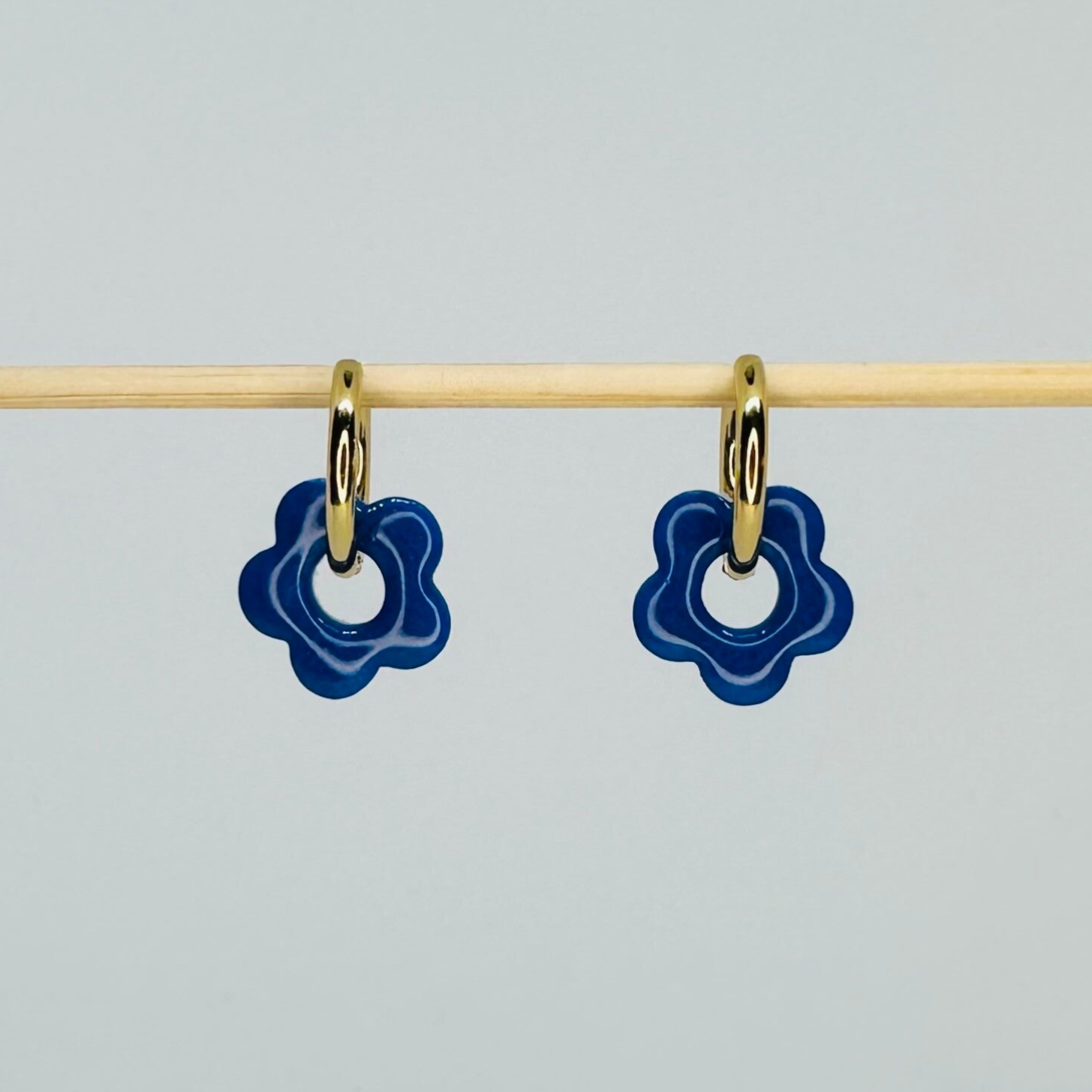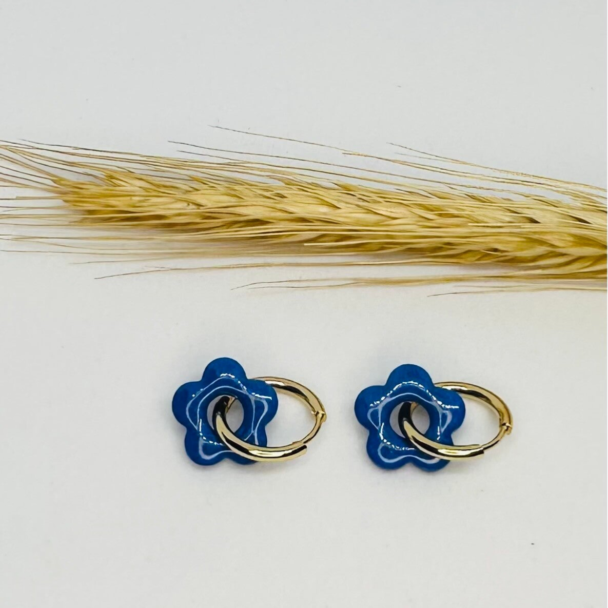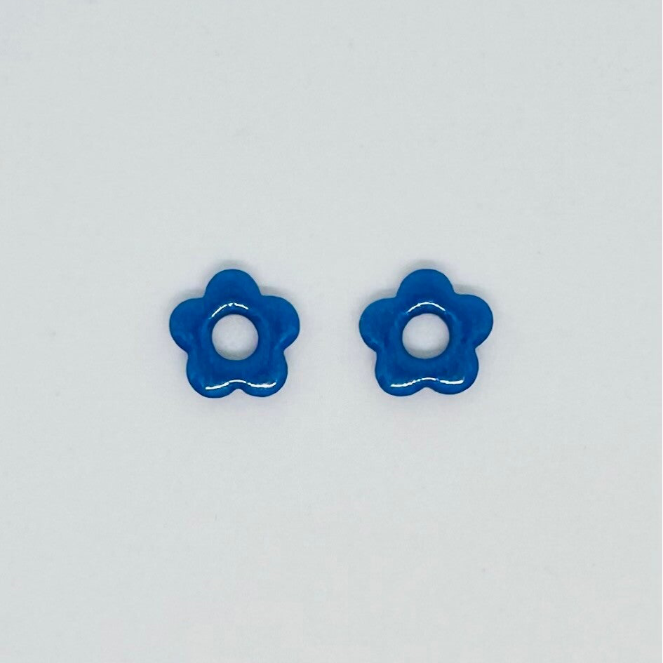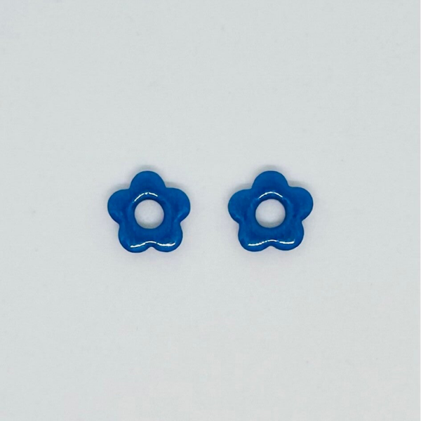 Fait main : Boucles d'oreilles en forme de fleur bleue foncée nacrée !