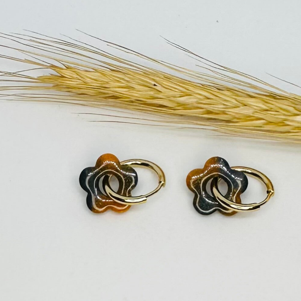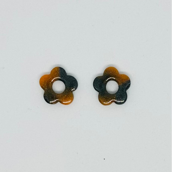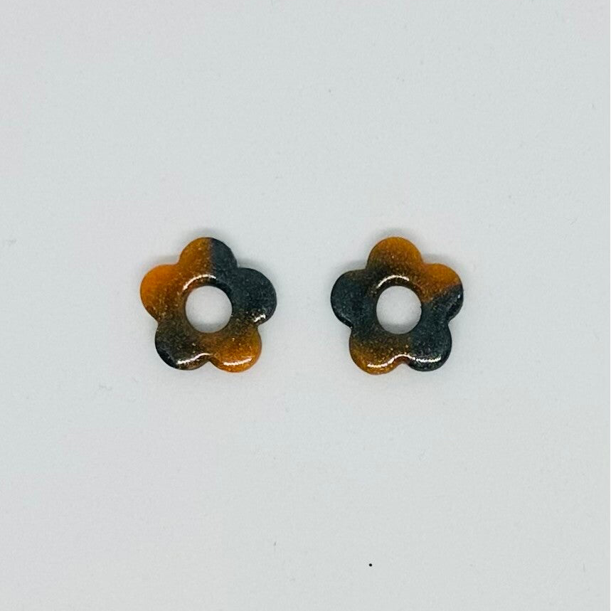 Fait main : Boucles d'oreilles en forme de fleur noire et orange nacrée !