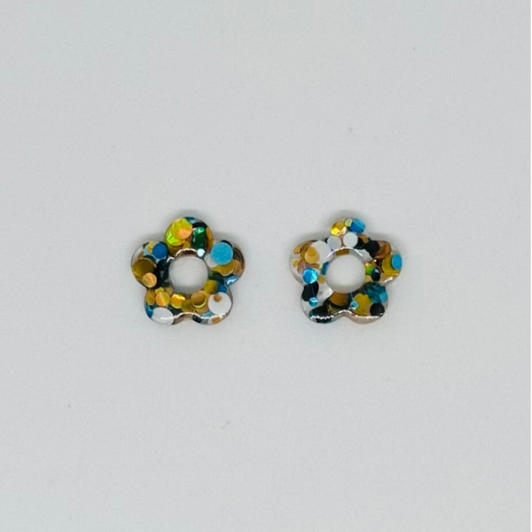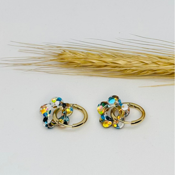 Fait main : Boucles d'oreilles en forme de fleur multicolore bleue !