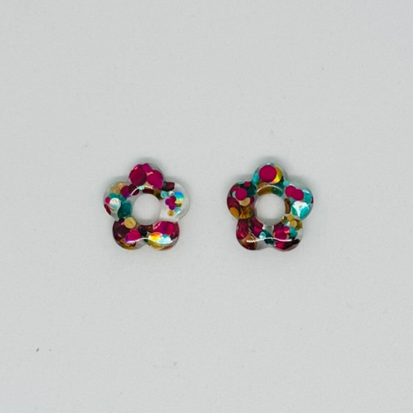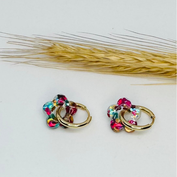 Fait main : Boucles d'oreilles en forme de fleur multicolore violette !