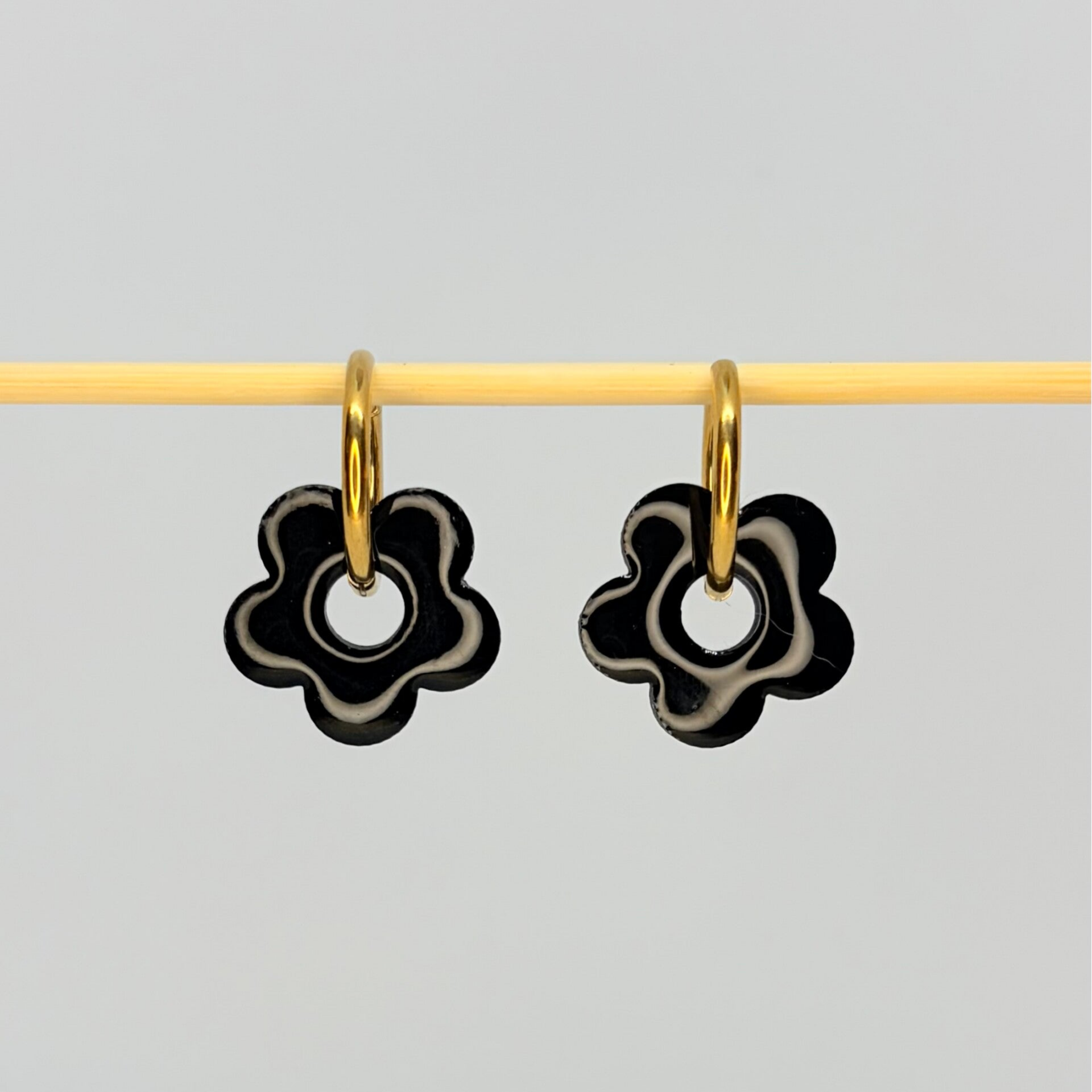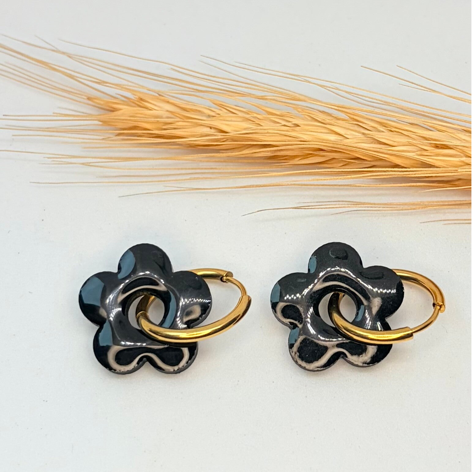 Fait main : Boucles d'oreilles en forme de fleur noire nacrée !
