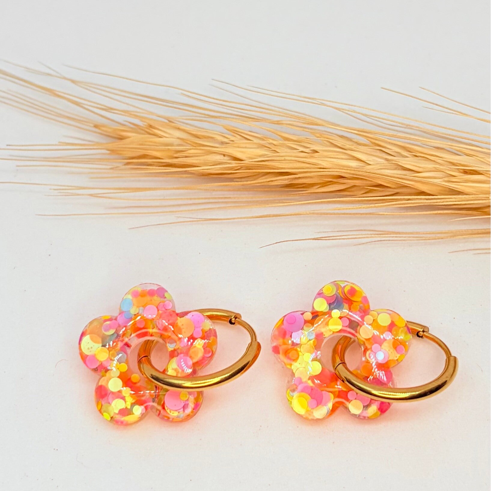 Fait main : Boucles d'oreilles en forme de fleur multicolore !