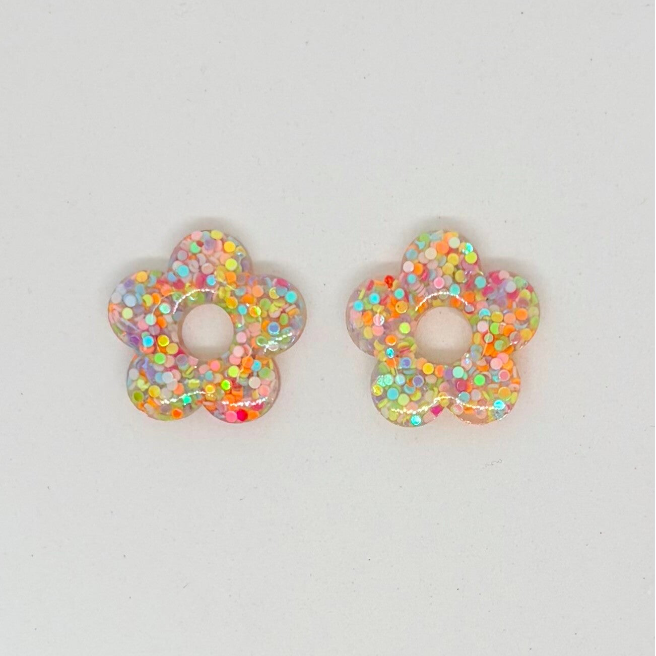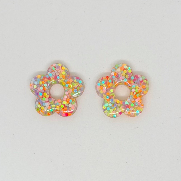 Fait main : Boucles d'oreilles en forme de fleur confettis !