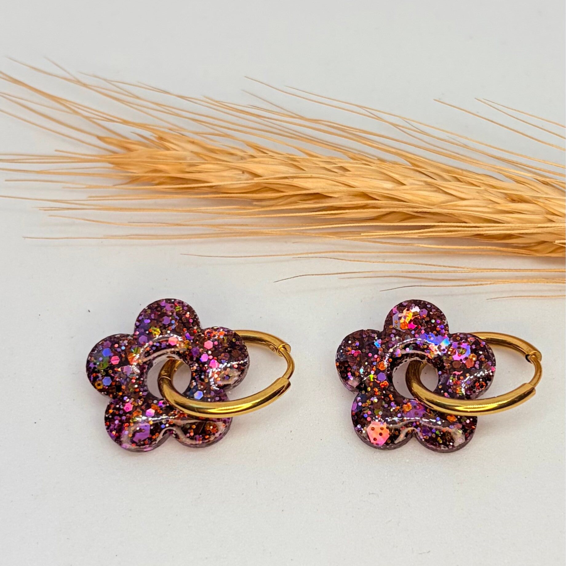 Fait main : Boucles d'oreilles en forme de fleur galaxie pailletée !